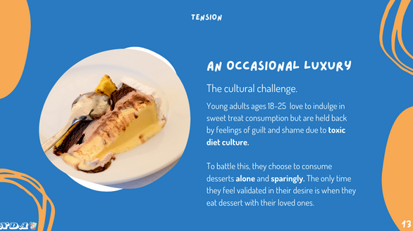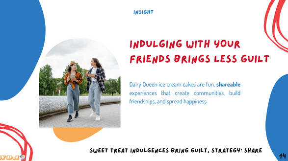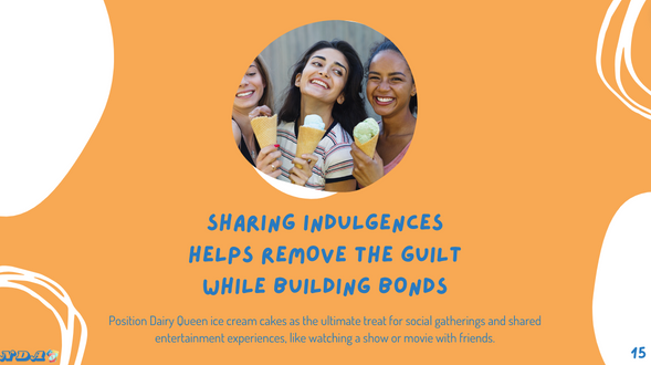 Reposition Dairy Queen ice cream cakes as a regular, shareable indulgence, perfect for everyday moments with friends. By tapping into the culture of social sharing and “little treats”, we developed a plan to increase the product's appeal through targeted social media content and influencer collaborations, ultimately normalizing it as a go-to treat for any social occasion.
